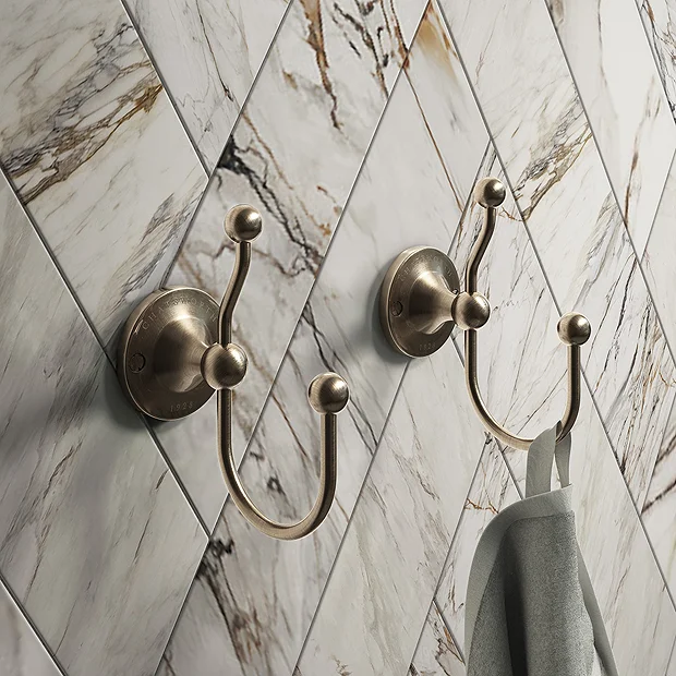 2 x Chatsworth 1928 Brushed Antique Brass Effect Traditional Double Robe Hooks