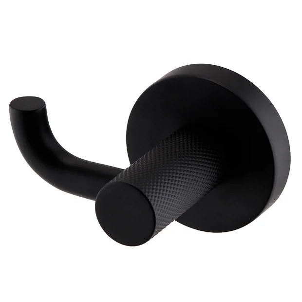 Arezzo Industrial Style Matt Black Single Robe Hook with Knurled Detailing