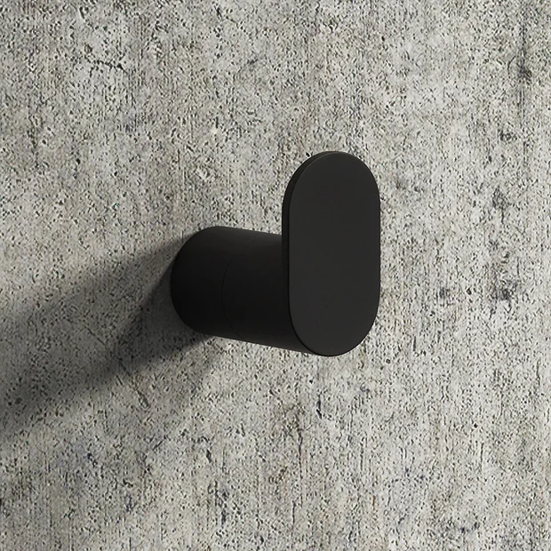 The Arezzo matt black range of bathroom accessories feature a smooth quality finish with cutting edge design. The minimalist appearance of this black robe hook integrates seamlessly into any modern bathroom. Add the finishing touch to your modern bathroom with the matt black towel hook from the Arezzo range.