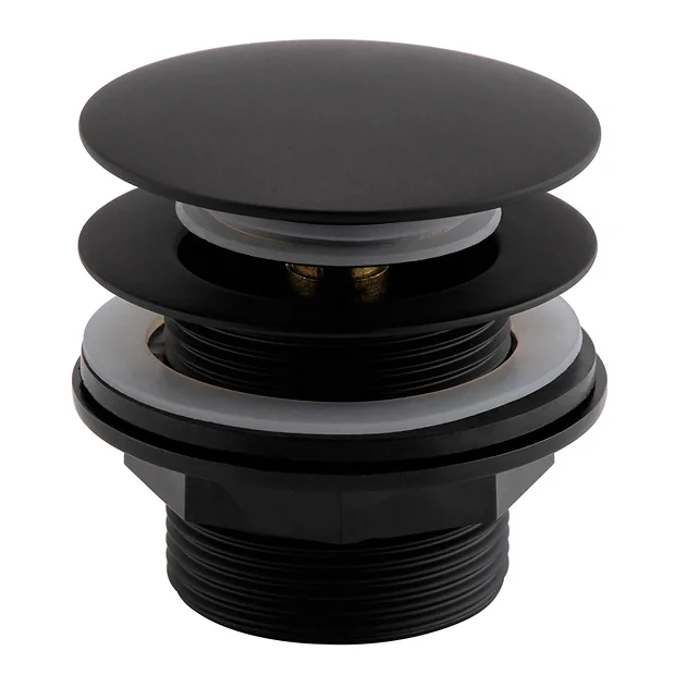 This Bath waste is designed to be used in baths that do not feature an Overflow. Constructed from solid brass with a matt black finish and a push button operation.