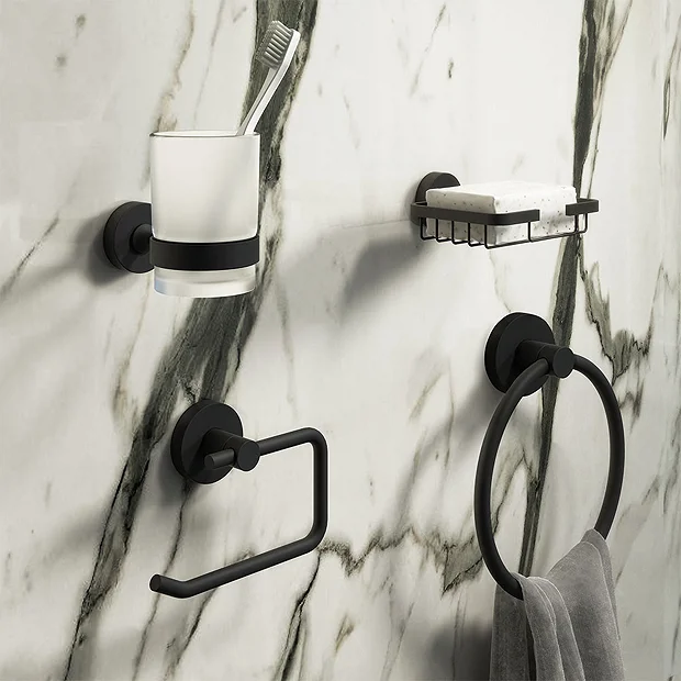 The eye-catching Arezzo Round modern wall mounted bathroom accessory package has been manufactured to a very high standard. It’s stylish and practical contemporary design integrates seamlessly into any bathroom décor. This quality accessory pack has been manufactured using high grade materials and comes in a durable matt black finish.