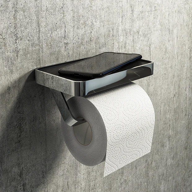 The stylish wall mounted Arezzo polished chrome roll holder with storage shelf, features a minimalist design which integrates seamlessly into any modern bathroom. Crafted to the highest standards, it’s contemporary design will bring a touch of sophistication to any bathroom. The multi-functional shelf provides excellent storage for your mobile phone.