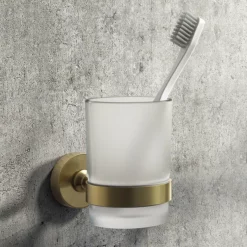 Arezzo Industrial Style Brushed Brass Round Frosted Glass Tumbler & Holder