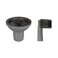 Venice Matt Grey Basket Strainer Kitchen Sink Waste With Rectangular Overflow Plate
