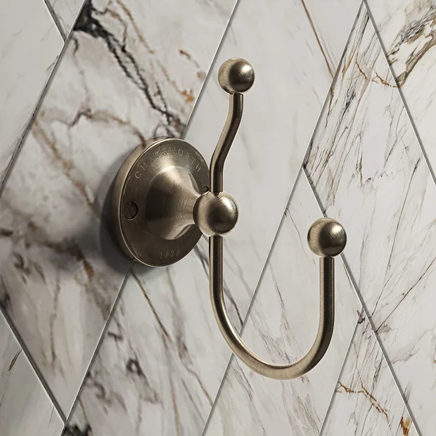 This high quality traditional double robe hook has been manufactured to a remarkably high standard by Chatsworth. The stunning Chrome finish makes this stylish hanging solution a beautiful practical feature. Minimal installation for maximum effect.