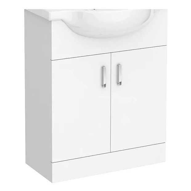 A replacement 2-door basin unit for the Cove 650mm vanity unit. Comes in a Gloss White finish and includes chrome handles. Unit is pre-cut to use with semi-recessed Cove basin.