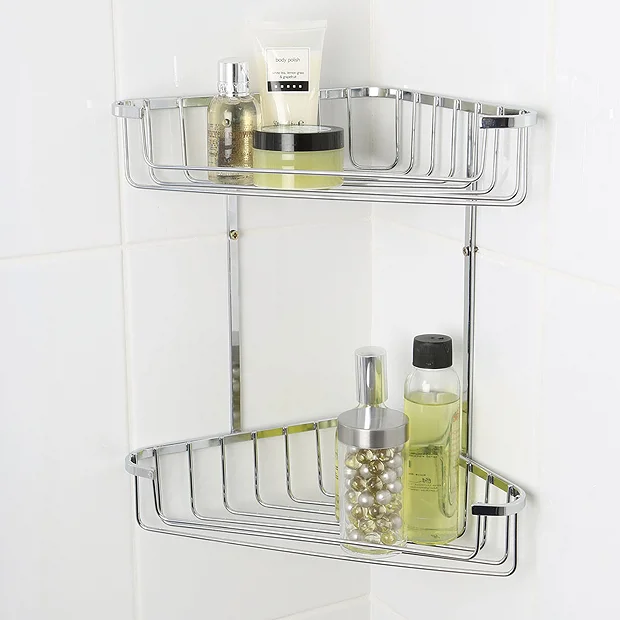 Croydex Corner Shower Storage Basket Chrome (Large – 2 Tier)
