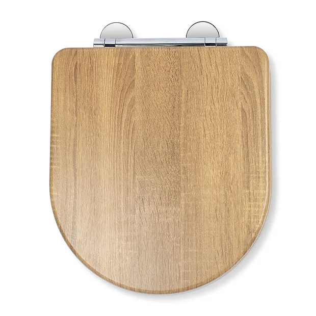 Croydex Levico Oak Effect D-Shaped Flexi-Fix Toilet Seat with Soft Close and Quick Release – WL610286H