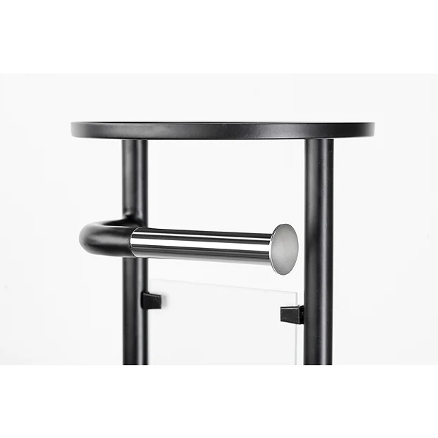 Providing extra storage in an attractive design, the toilet butler in matt black and chrome incorporates a contemporary look and feel to the bathroom. With a shelf for storage, toilet roll holder, toilet brush and spare toilet roll holder you get a 4 in 1 product.