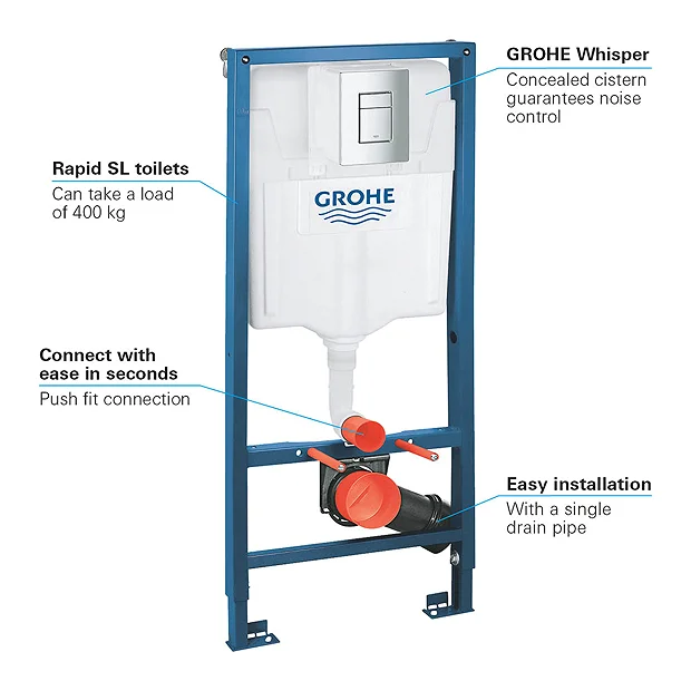 Grohe Rapid SL 1.13m 3 in 1 Set Support Frame for Wall Hung WC – 38772001