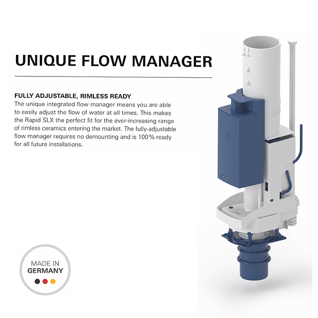 The sleek and robust Rapid SLX 1.13m Support Frame for Wall Hung WC. Rapid SLX has an attractive powder-coated steel frame which is TÜV approved for a load of 400kg. The unique flow manager means you can easily adjust the water flow so it can also be used with any new toilet, including rimless WCs, which use water under less pressure. The Plug & Play design includes an electric socket and water connection so you can easily add a shower toilet while GROHE Whisper technology helps stop sound travelling through walls when the flush is used.