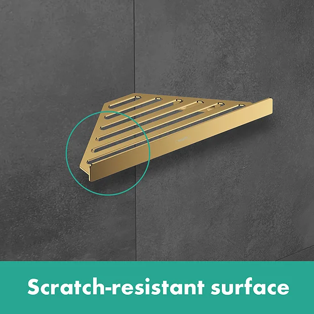 The hansgrohe AddStoris Polished Gold Optic Corner Shower Basket provides the perfect finishing touch for upgrading your bathroom. Manufactured from metal, it comes finished in hard-wearing Polished Gold Optic that creates a Bold look that is easy to maintain.