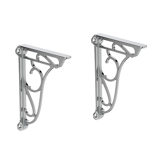 A pair of Luxury Ornate Cistern Brackets for use with Ideal Standard Waverley low level cisterns. An optional accessory to provide additional support. Manufactured from chrome plated metal.