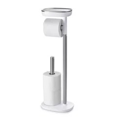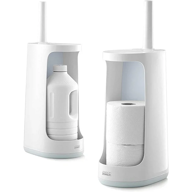 The Joseph Joseph Flex Store Toilet Brush with Extra-Large Caddy features a flexible, D-shaped head that reaches all areas, even under the rim. Unlike conventional toilet brushes that hold dirt and liquid and with bristles that distort over time, the Flex Plus Smart has widely spaced bristles that prevent dirt clogging, allowing liquid to drain quickly and minimising drips between cleaning and storing. The extra-large caddy can hold up to three spare toilet rolls or a large cleaning bottle.