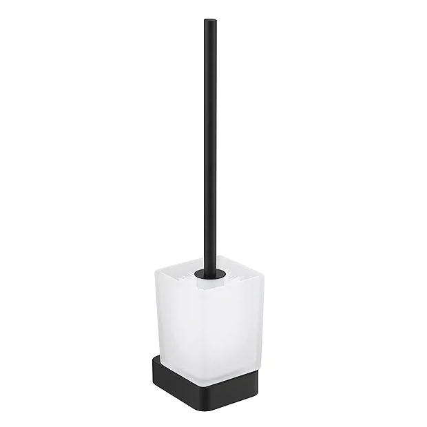 This Vos Matt Black toilet brush and holder provides the perfect finishing touch whilst creating a sophisticated look. Made from high quality brass and finished in matt black with a frosted glass brush holder.