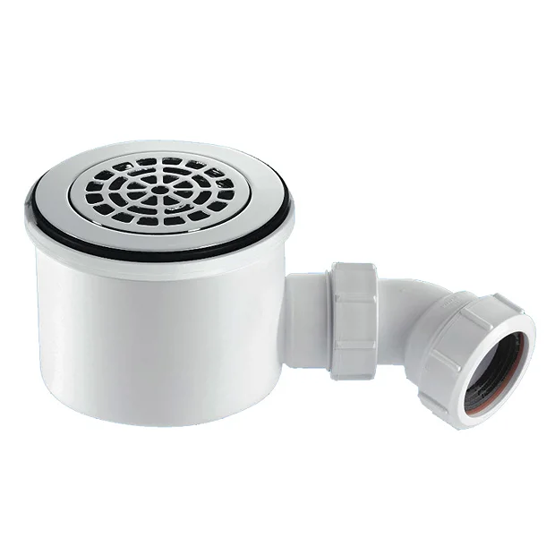 A 90mm x 50mm Water seal shower trap with a multi-fit outlet high-flow high-performance trap with removable 113mm Petal design chrome plated brass flange for easy cleaning.