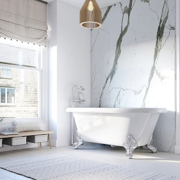 Showerwall 2.44M Long Tongue & Grooved – 600mm Width – Bianco Carrara