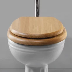 A luxury hand-crafted solid dark oak toilet seat with quality heavy-weight Incalux bar hinges from Silverdale. For use with Silverdale high / low level toilets.