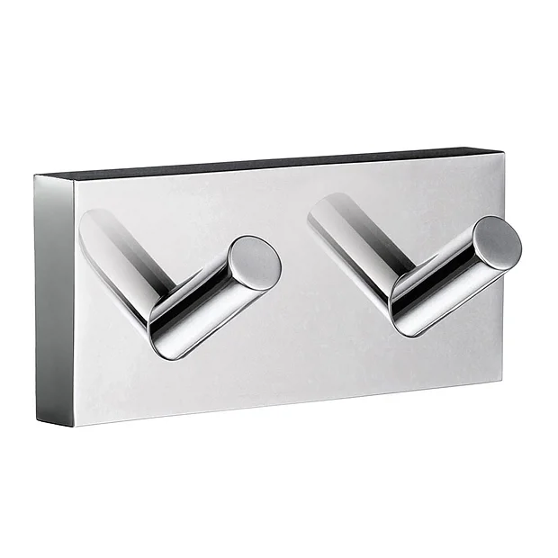 The stylish and high quality Double Towel Hook from the Smedbo House range is an essential accessory for any modern bathroom. Constructed with a solid brass core and copper-zinc alloy which is rust resistant and beautifully finished in a durable polished chrome finish. Smedbo products are made to the highest standards with special blacksmith attention paid to every detail.