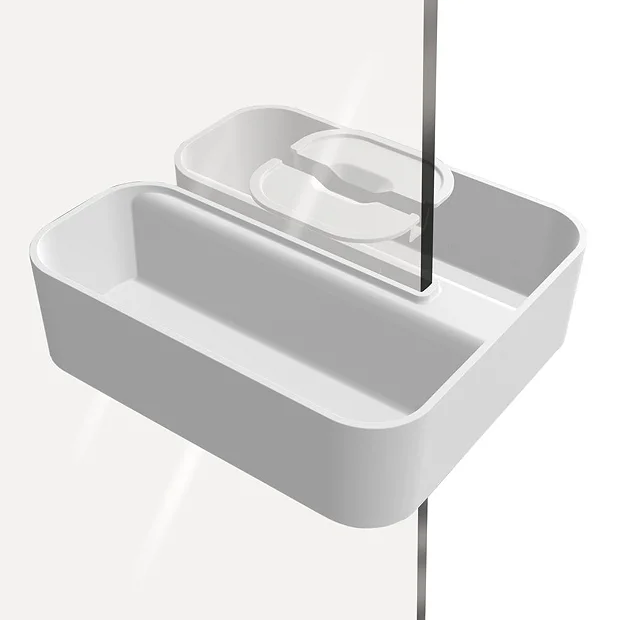 Create more space behind your shower screen with the Tiger 2-Store Clip-on Shower Basket. This product offers elements of character with smart and stylish storage solutions. This way you can easily clamp the basket to the glass screen, the hooks can be placed flexibly and the set is equipped with a universal phone holder. You can also enjoy your favorite music while taking a shower.