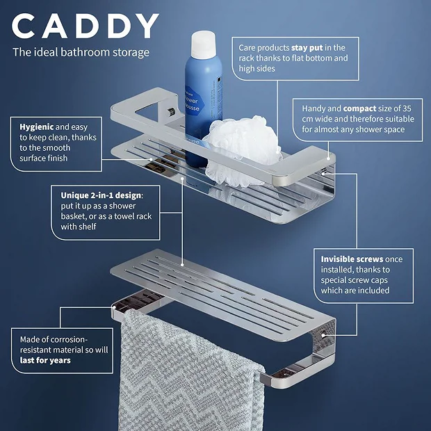 Give your bathroom a quick and smart update with the handy Tiger Caddy Shower Basket/Towel Rail. It is your personal assistant in the bathroom and immediately provides a feeling of relaxation. The Caddy not only helps to store your toiletries, but it can also be mounted upside down and used as a towel rack.
