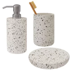 Features a trendy terrazzo effect pattern, this stunning concrete soap dish brings stylish contemporary design to the bathroom. Beautifully crafted, the Toreno terrazzo soap dish gives any bathroom an artisanal, Mediterranean feel. Provides excellent storage for your bathroom soap and helps keep your bathroom organised and tidy.