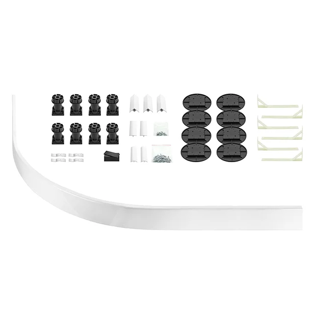Kit includes a set of adjustable legs to lift your shower tray off the floor – allowing you to fit the waste pipe beneath it, and a set of acrylic panels that will fit around the base of the tray, obscuring the legs and giving the impression that the tray is resting on the floor.