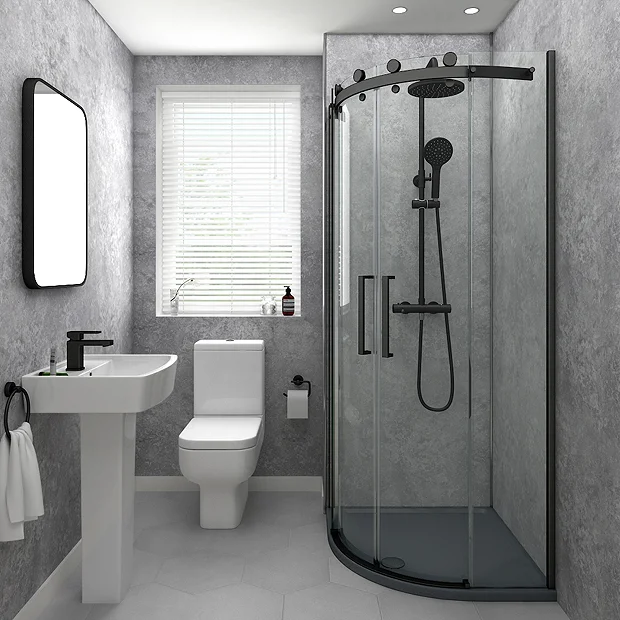 Make discoloured tile grouting a thing of the past with this Orion Grey Concrete PVC Shower Wall Panel. Featuring a matt finish concrete effect, this shower wall panel will bring modern edge to your bathroom or en suite. Create a shower area instantly using just two shower wall panels and save both time and money. The unit’s strong PVC core is totally waterproof so you can rest assured it will last.