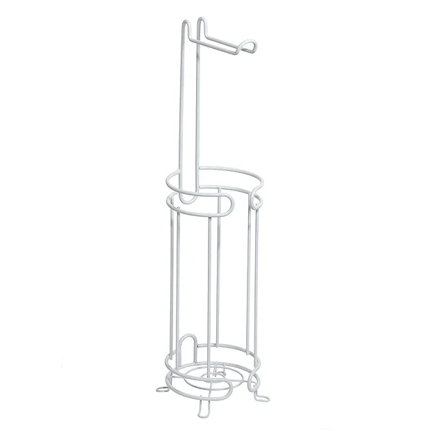 White Wire Freestanding Toilet Roll & Spare Paper Holder