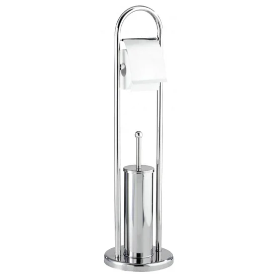 Solid standing Exclusive WC-Set from Wenko. Made of polished stainless steel. Includes a toilet brush set and a toilet paper holder. A great addition to any bathroom, its small and unobtrusive form fits in every corner without hassle. Ideal for small bathrooms and those with limited space, this item a great marriage of form and function.
