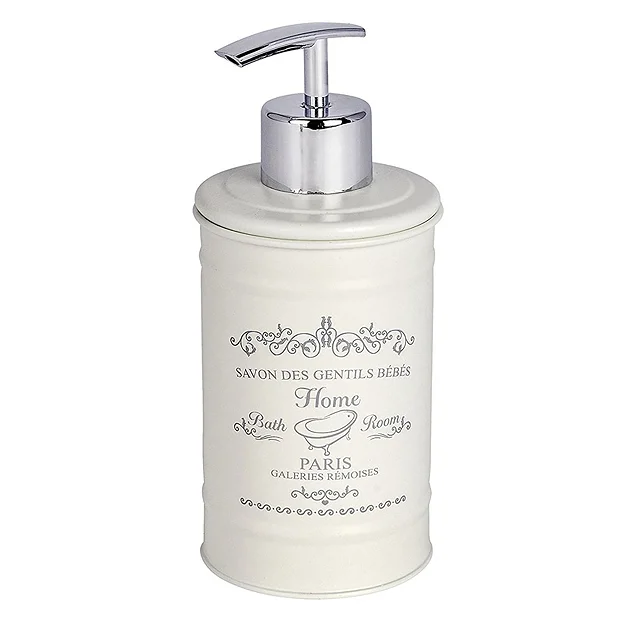 Elegantly crafted from steel and painted in cream with a stylish vintage print, this Wenko Home soap dispenser brings a touch of french chic to your bathroom. It provides ideal storage for liquid soap or hand lotion and helps keep your bathroom surfaces tidy.