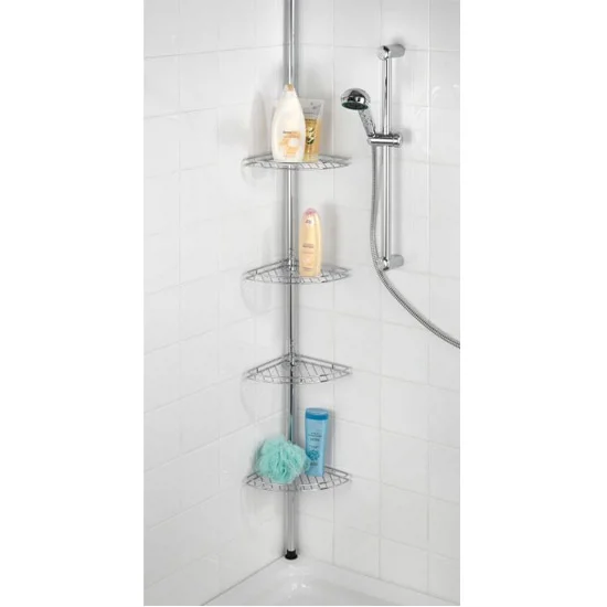 The Prea Telescopic Corner Rack from Wenko, contains 4 x wire baskets and 1 x telescopic rod. Extendable to max 275cm. Can be used in shower cubicles, bath tube corners or universally in the bathrooms. Offers a lot of space for shampoo, soap, sponges etc.