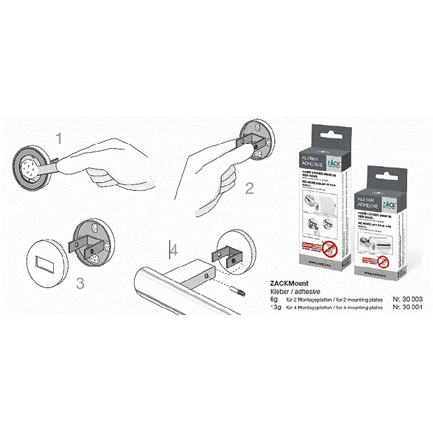 Zack Mount is extremely well-suited for attaching a wide variety of products without having to drill holes. Items can be attached to load-bearing, rough and smooth interior and exterior surfaces, such as tiles, natural stone, concrete, glass, wood laminates, metal and many plastics.