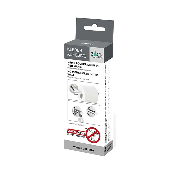 Zack Mount is a specially designed mounting glue for fitting Zack Scala bathroom products if you choose to not use the traditional drill and screw method. Zack Mount makes fitting your new bathroom products easy and is especially useful if you do not want to drill tiles, walls or bath and shower surrounds.